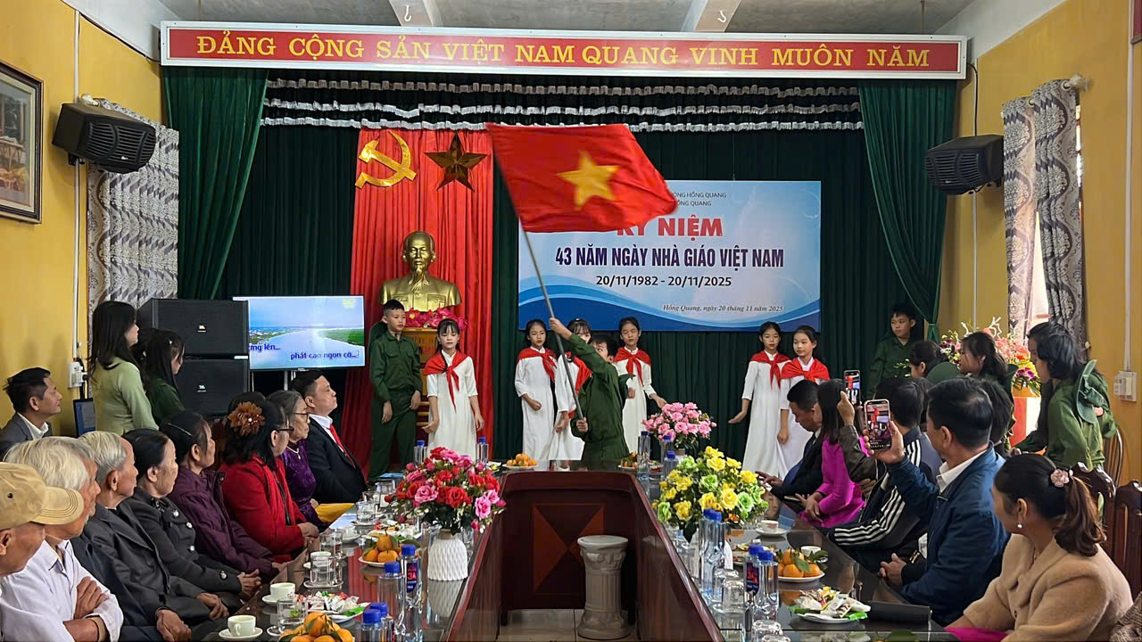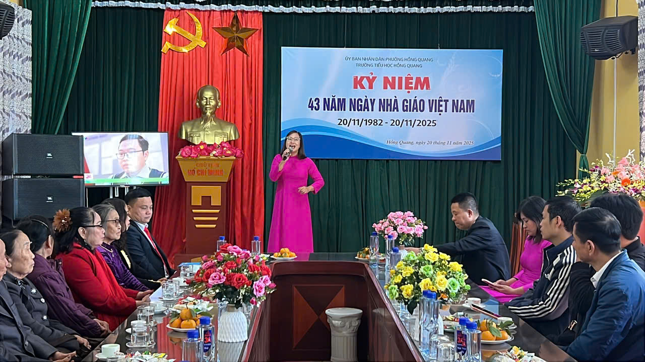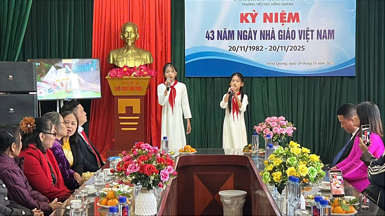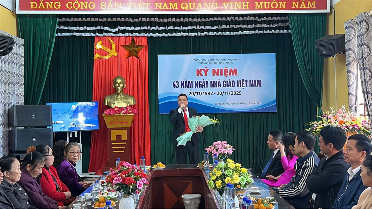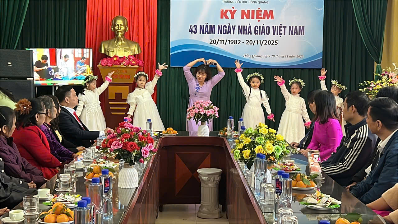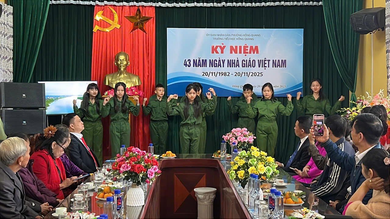 Sáng ngày 20/11/2025, hòa chung không khí tri ân trên cả nước, trường Tiểu học Hồng Quang long trọng tổ chức Lễ kỷ niệm 43 năm Ngày Nhà giáo Việt Nam 20/11 – Một dịp đặc biệt để tôn vinh những đóng góp thầm lặng nhưng vô cùng to lớn của các thầy giáo, cô giáo.