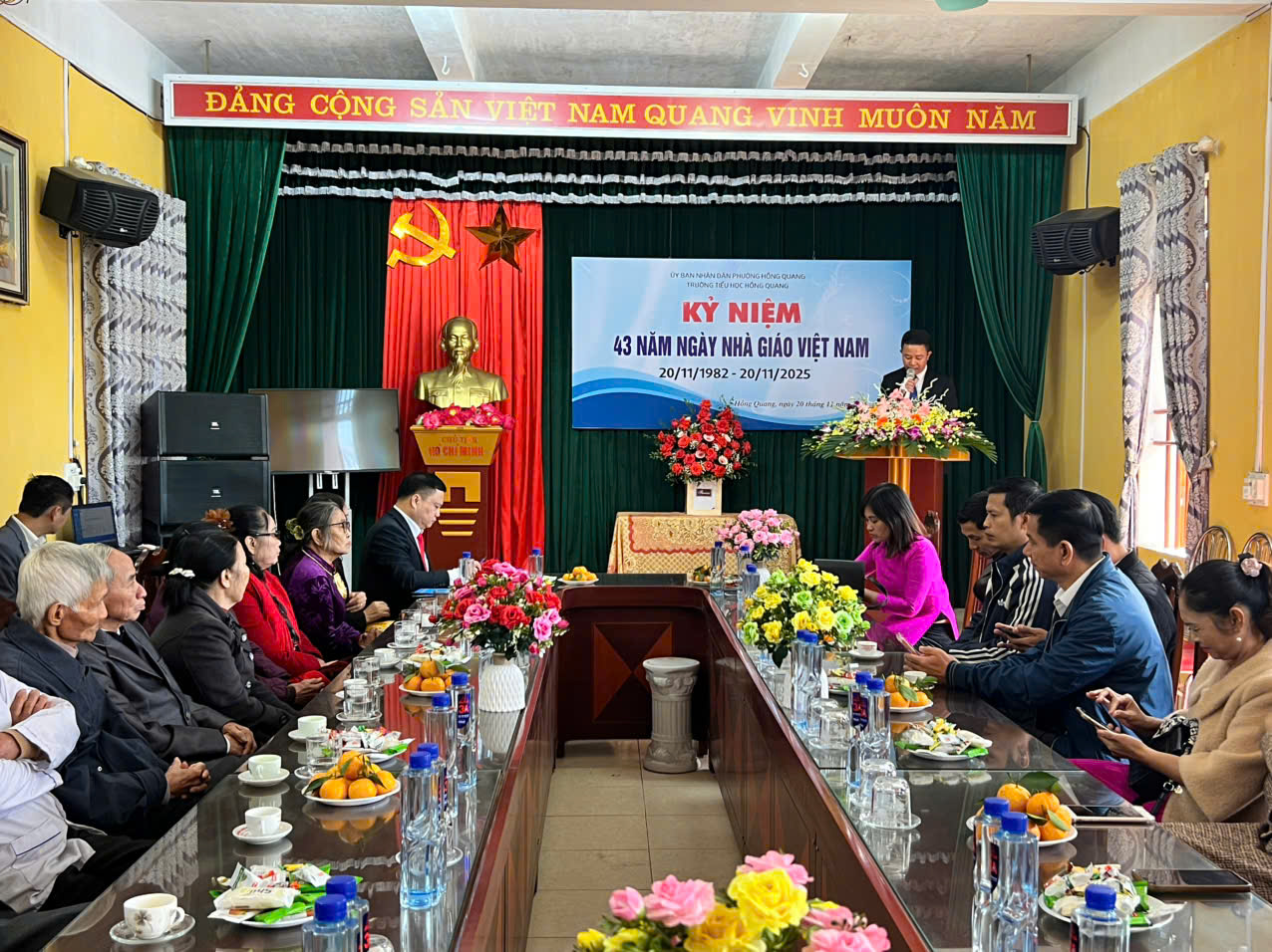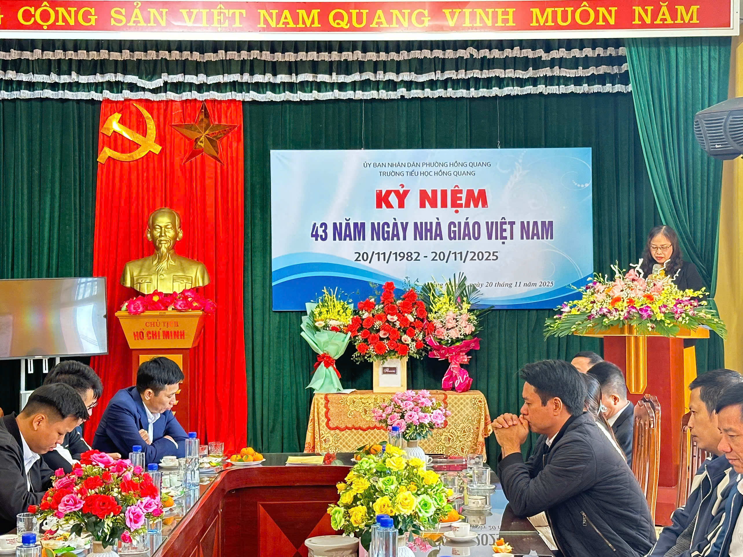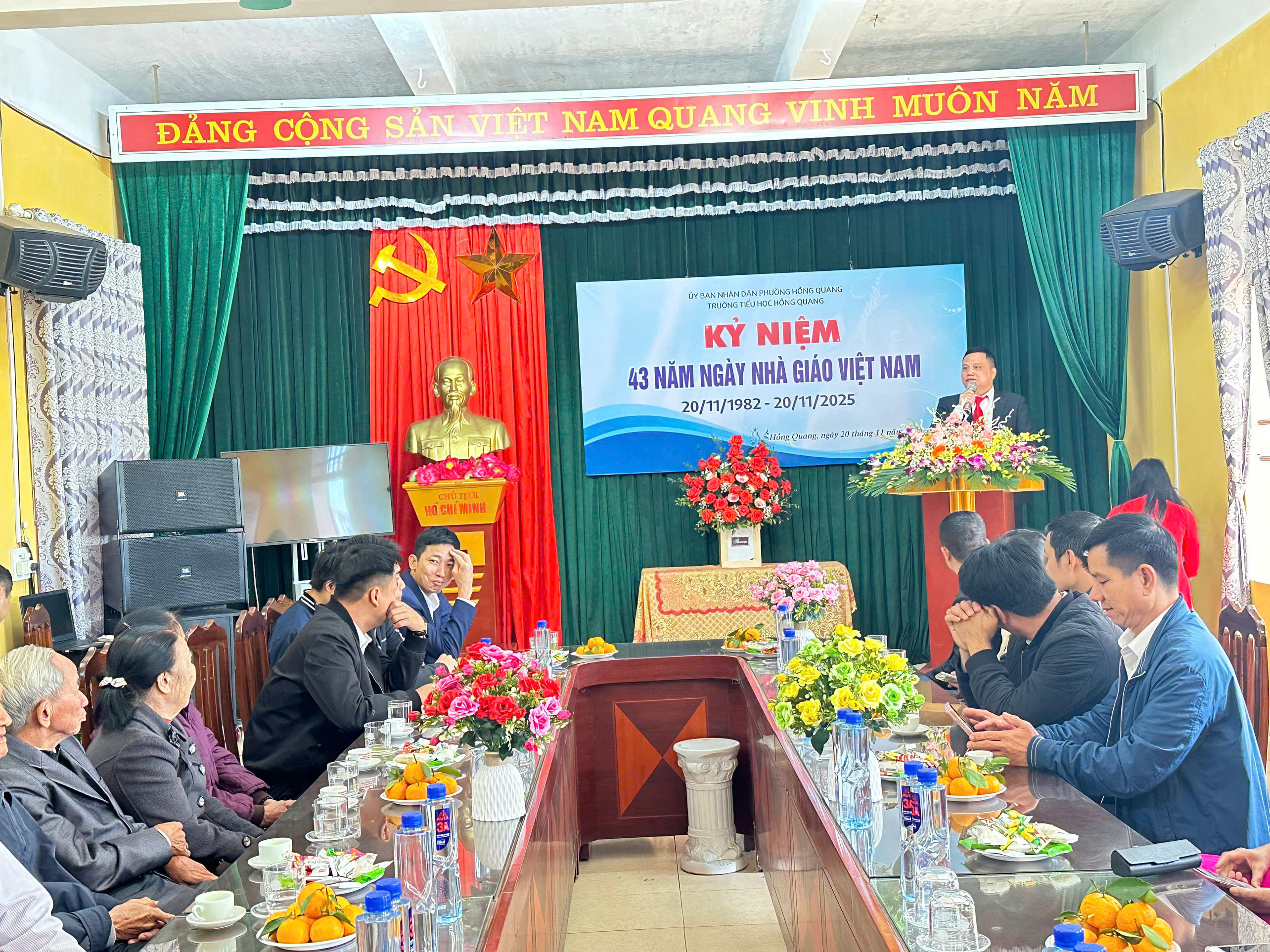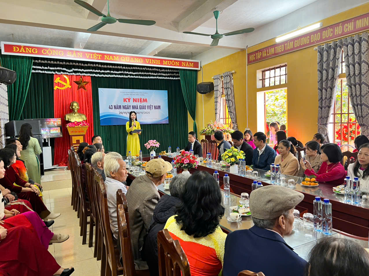 Sáng ngày 20/11/2025, hòa chung không khí tri ân trên cả nước, trường Tiểu học Hồng Quang long trọng tổ chức Lễ kỷ niệm 43 năm Ngày Nhà giáo Việt Nam 20/11 – Một dịp đặc biệt để tôn vinh những đóng góp thầm lặng nhưng vô cùng to lớn của các thầy giáo, cô giáo.