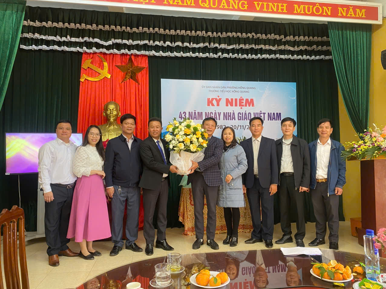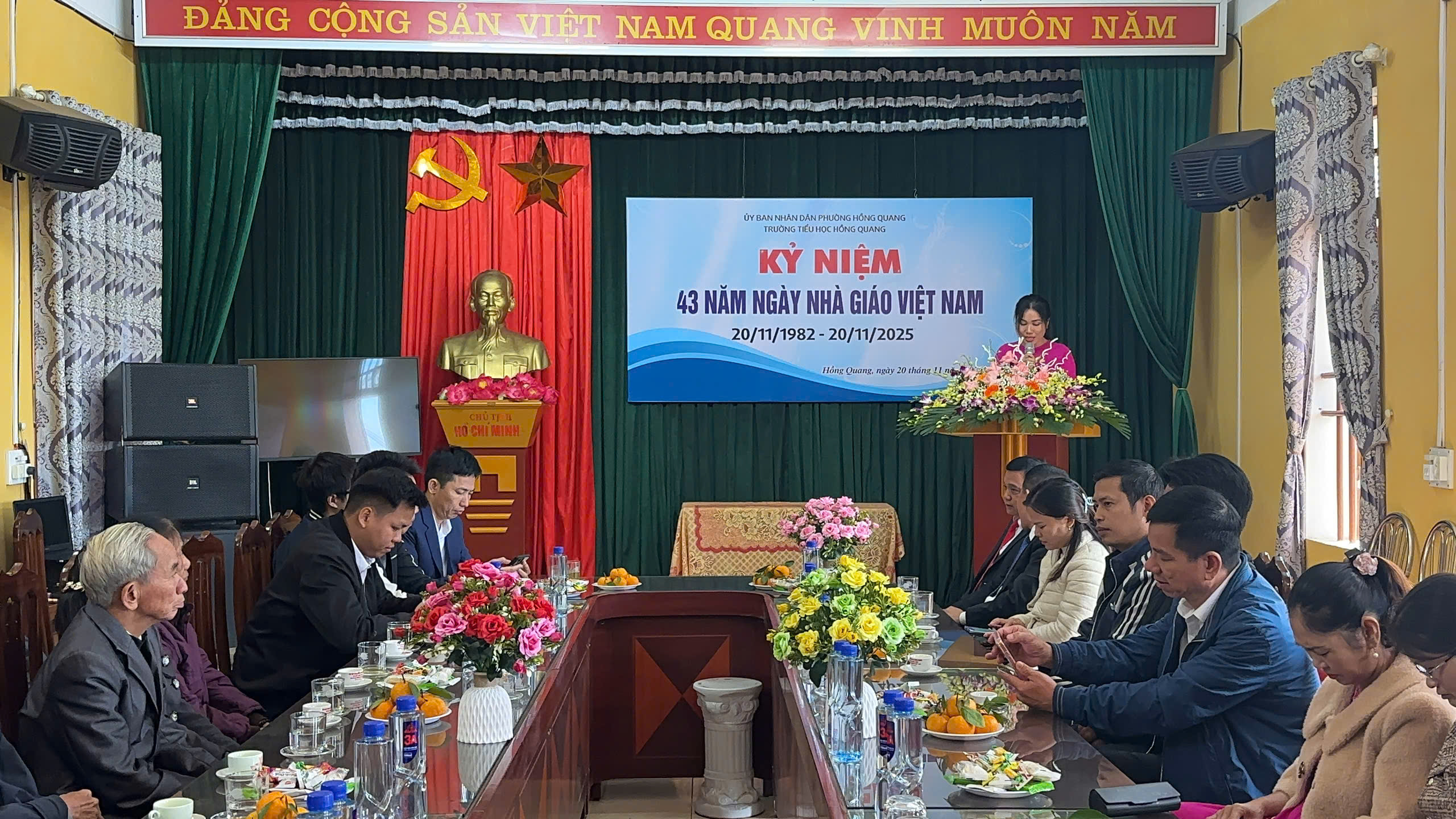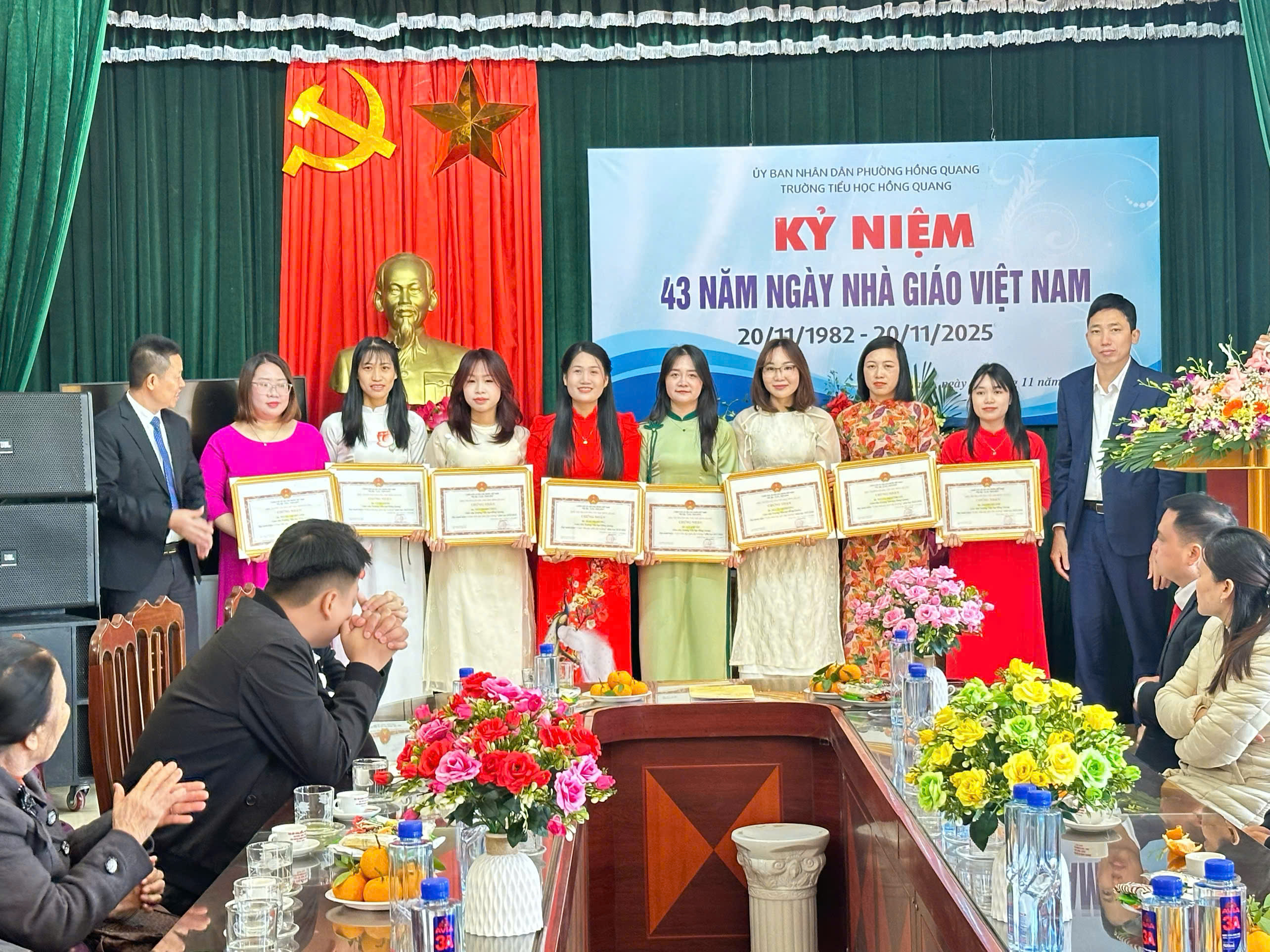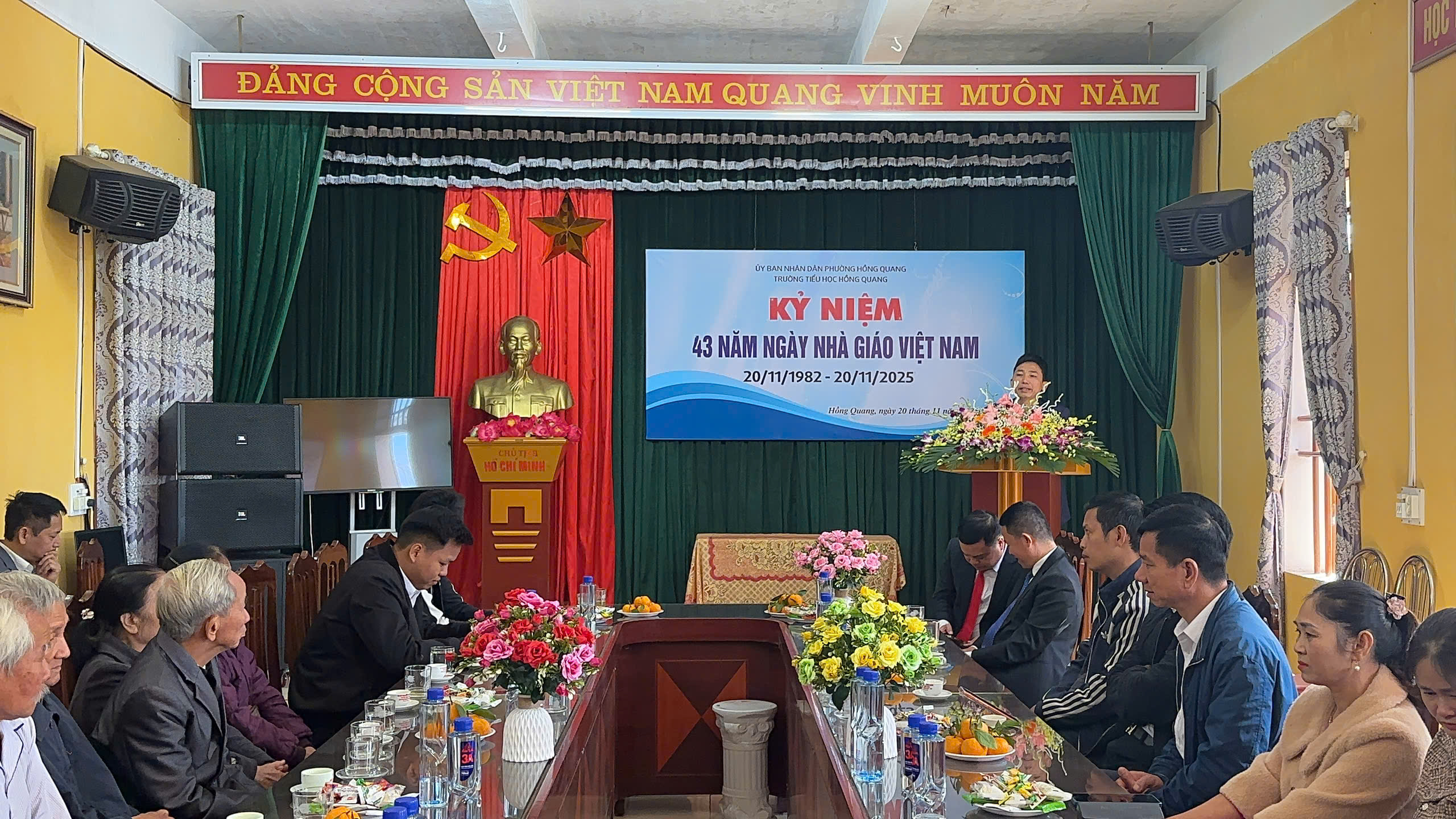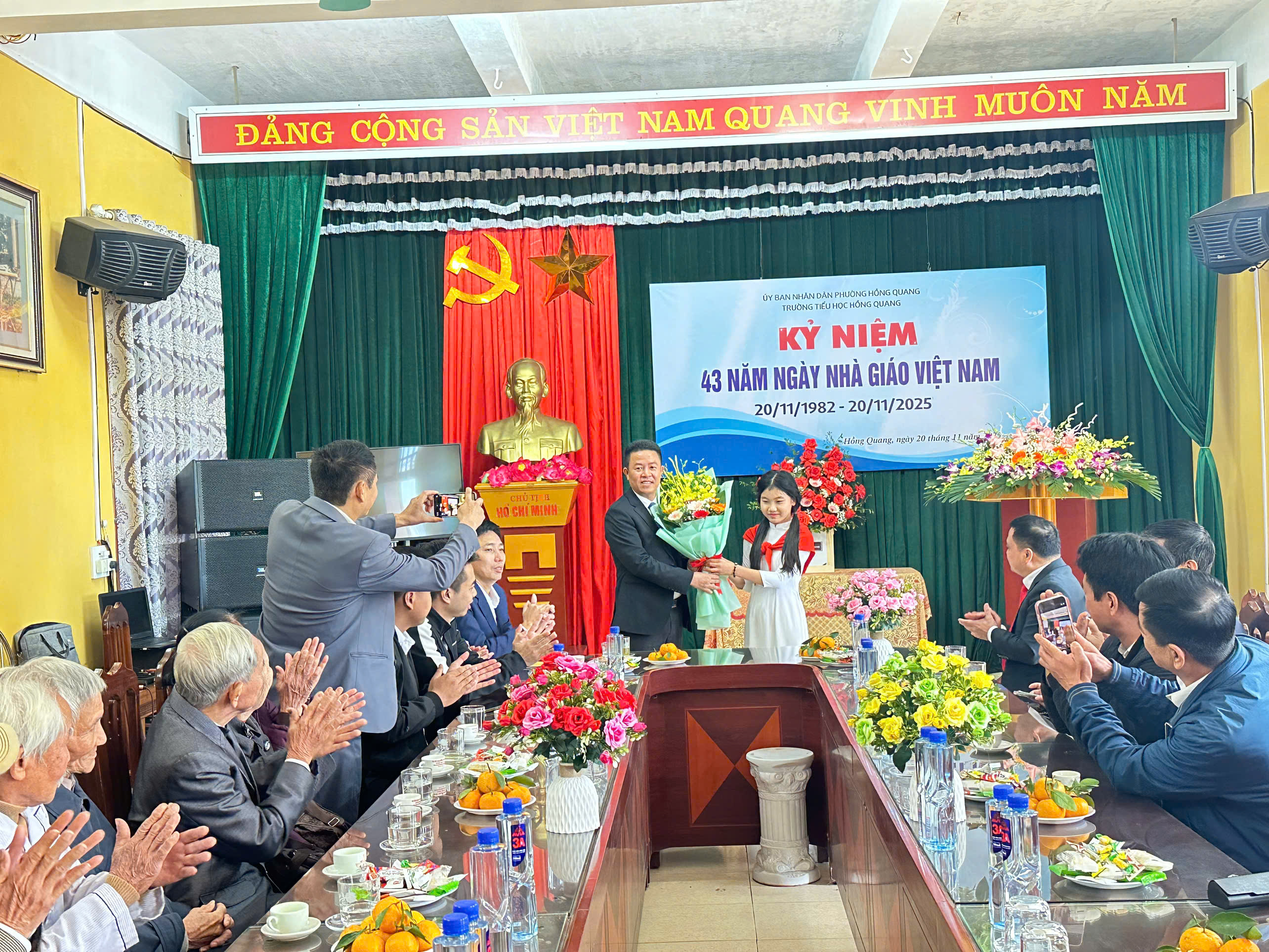 Sáng ngày 20/11/2025, hòa chung không khí tri ân trên cả nước, trường Tiểu học Hồng Quang long trọng tổ chức Lễ kỷ niệm 43 năm Ngày Nhà giáo Việt Nam 20/11 – Một dịp đặc biệt để tôn vinh những đóng góp thầm lặng nhưng vô cùng to lớn của các thầy giáo, cô giáo.