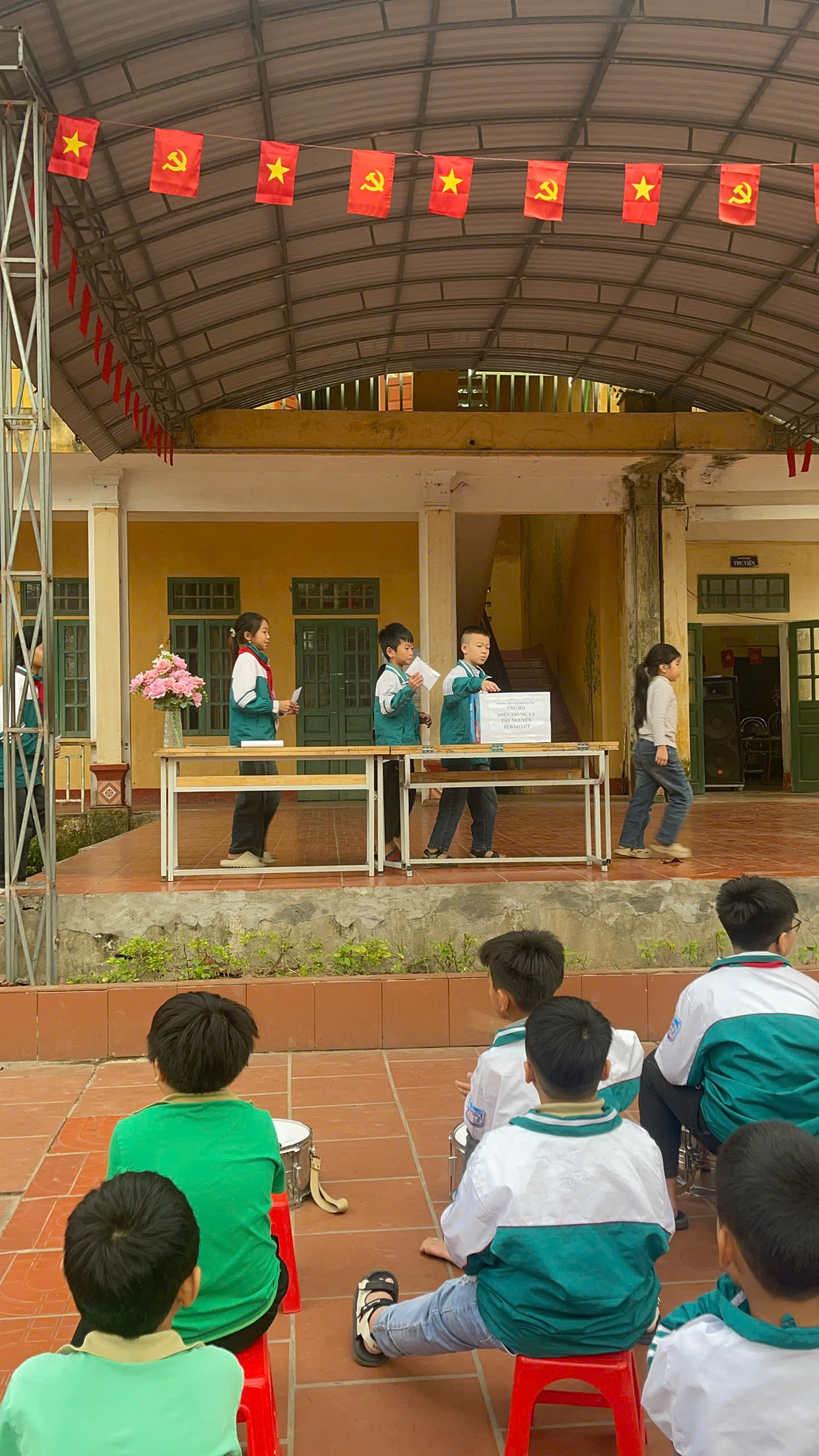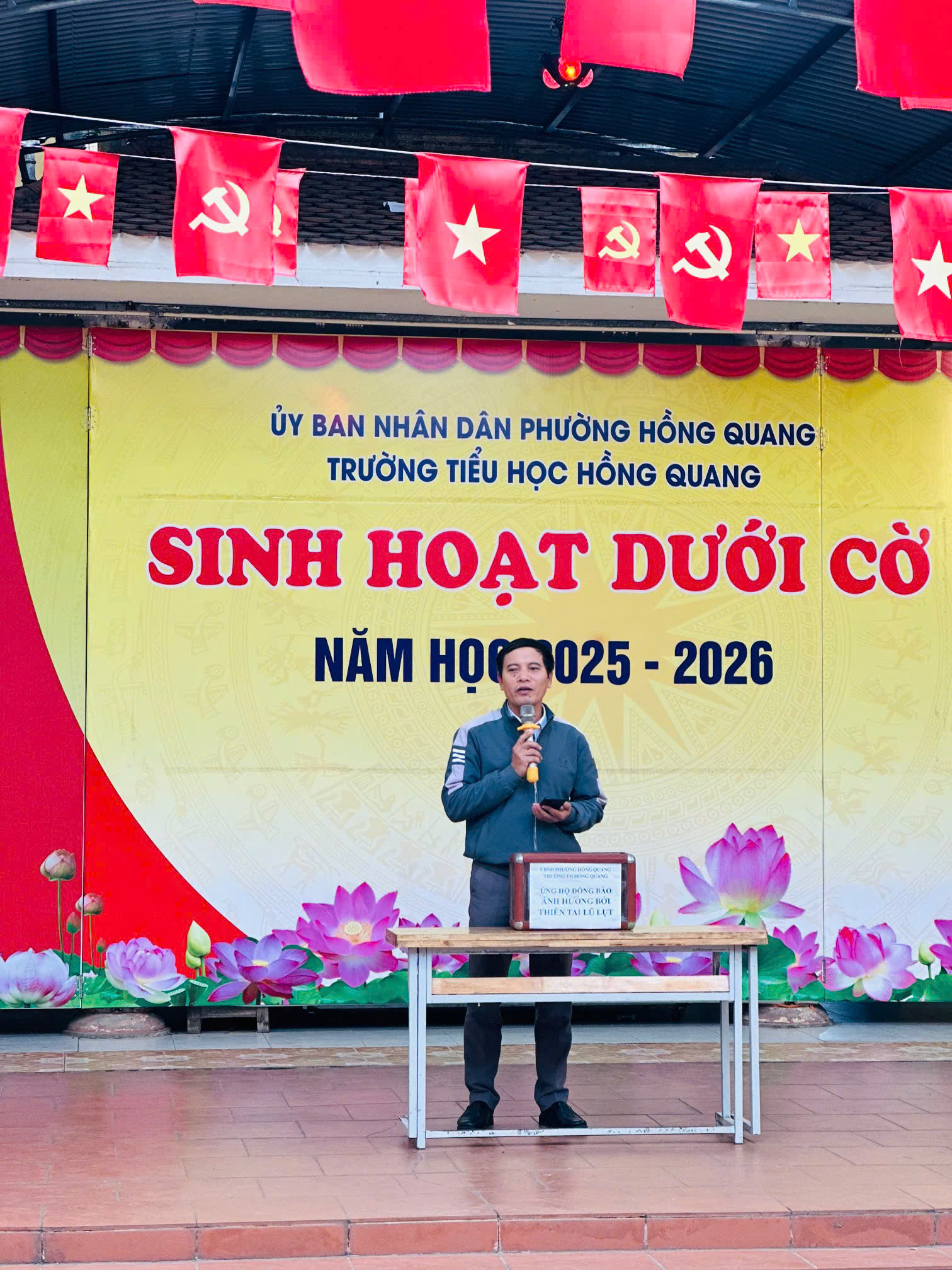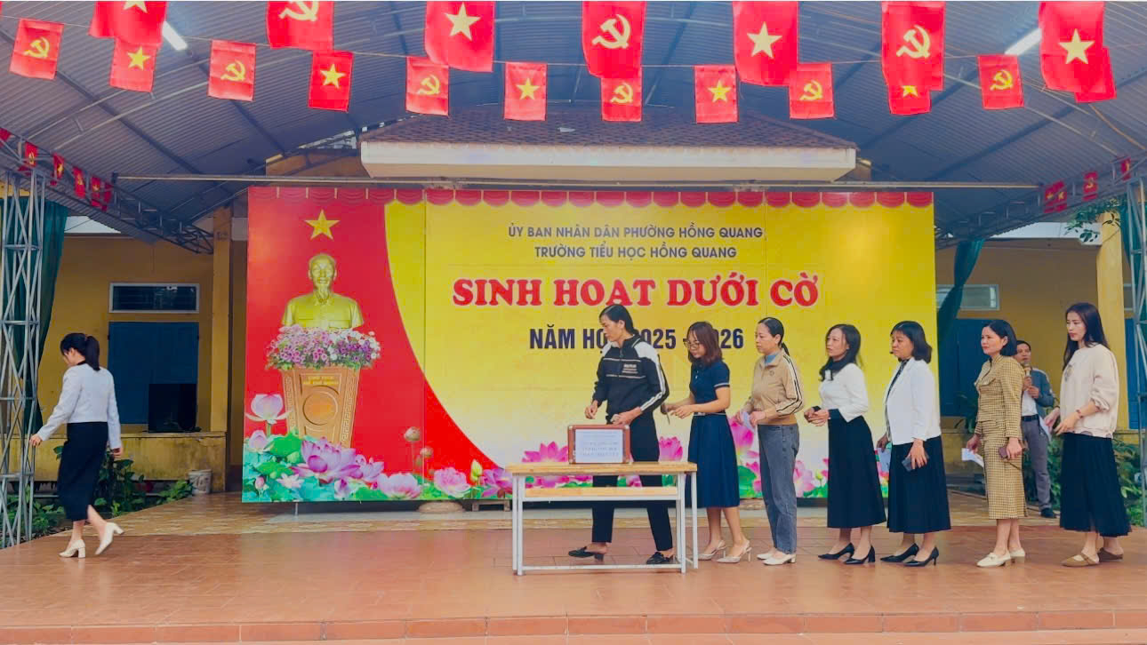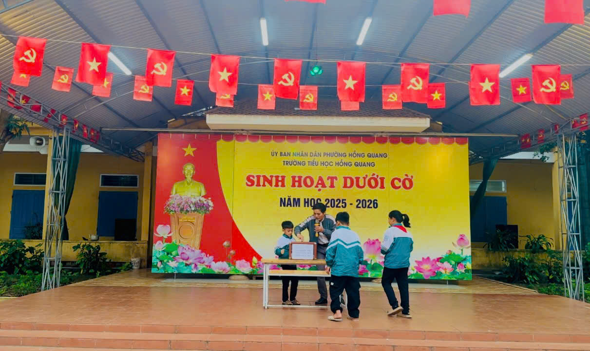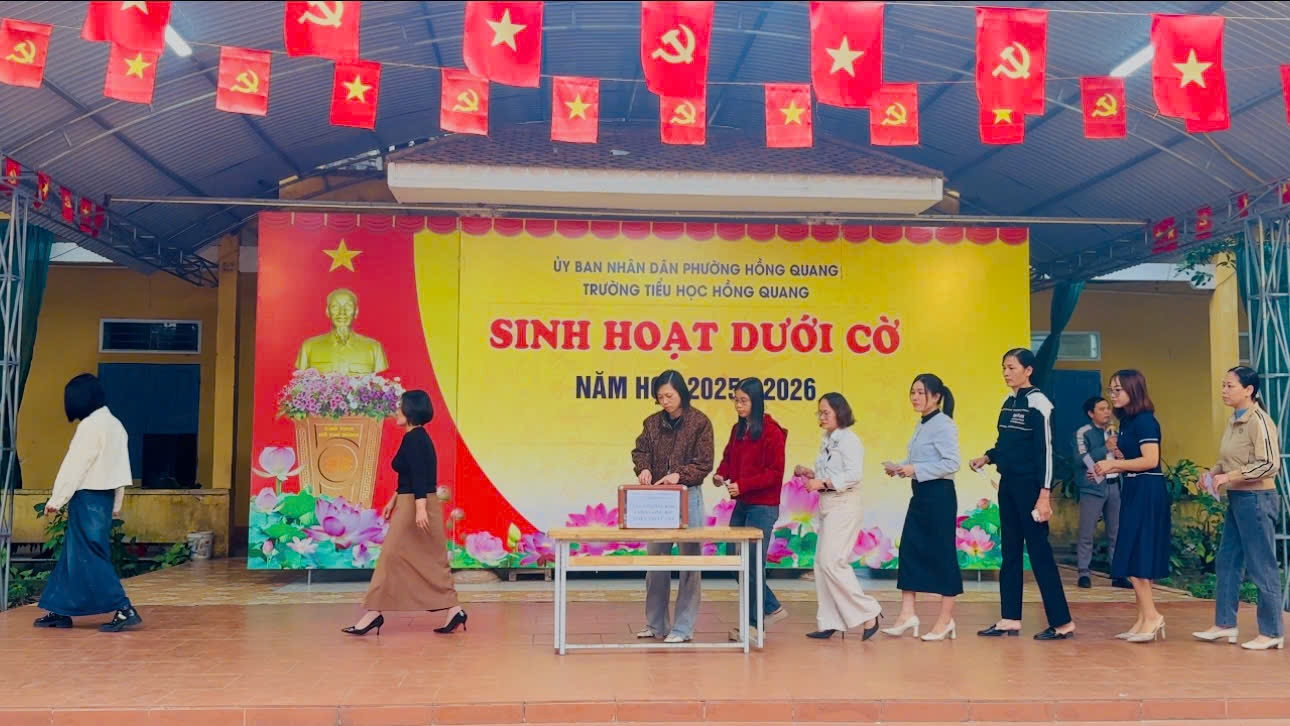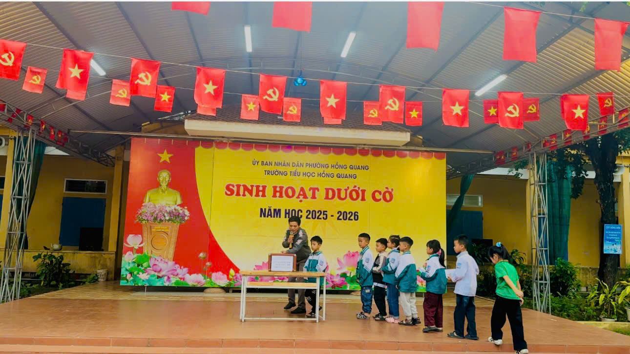 Trong buổi sinh hoạt dưới cờ đầu tuần sáng ngày 22/12/2025, Trường Tiểu học Hồng Quang đã tổ chức hoạt động quyên góp ủng hộ đồng bào bị ảnh hưởng bởi thiên tai, lũ lụt với tinh thần tương thân tương ái, sẻ chia và trách nhiệm vì cộng đồng.